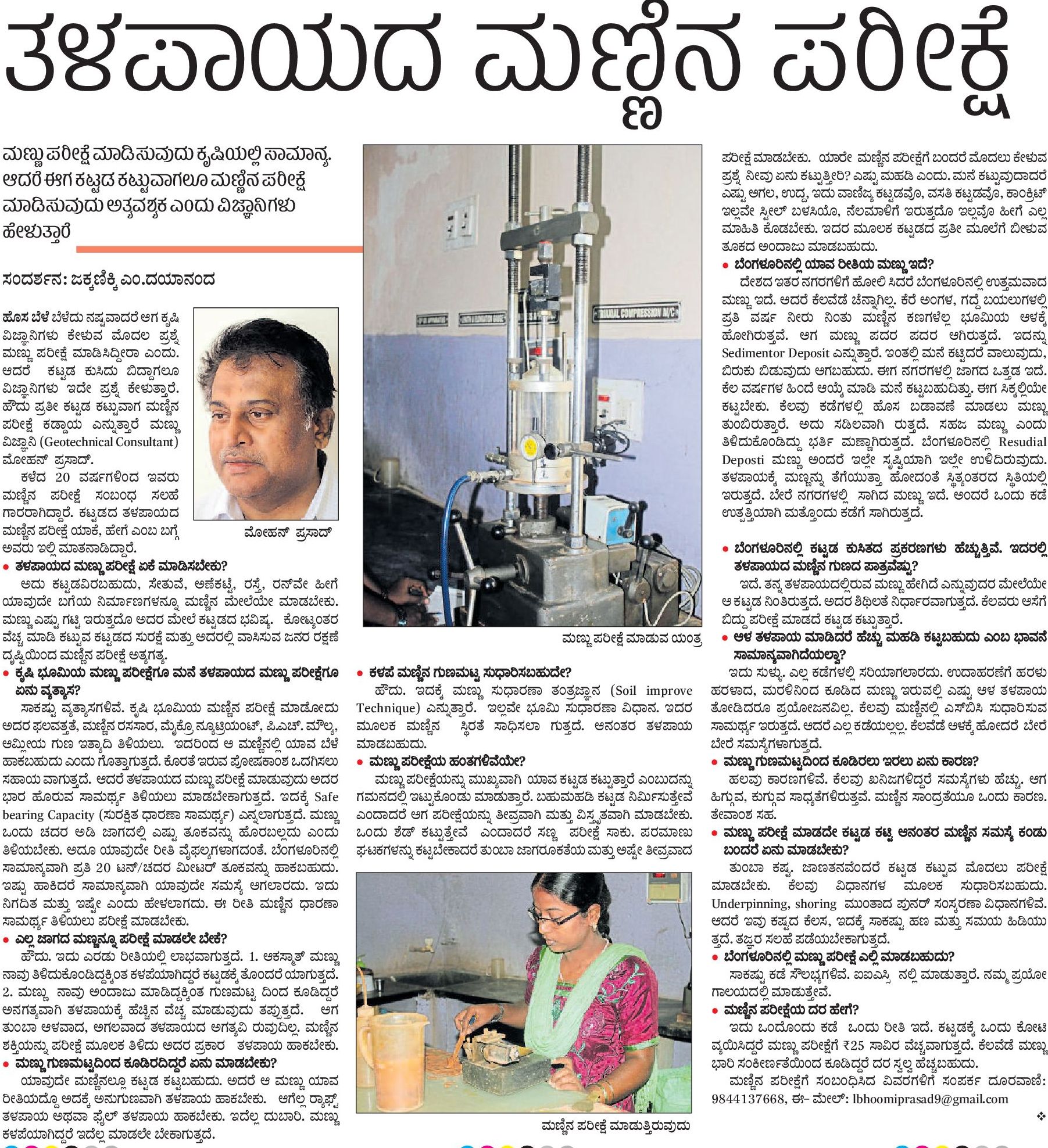 I found an interesting article in one of the last week newspaper related to Soil testing necessary to be done before the construction.