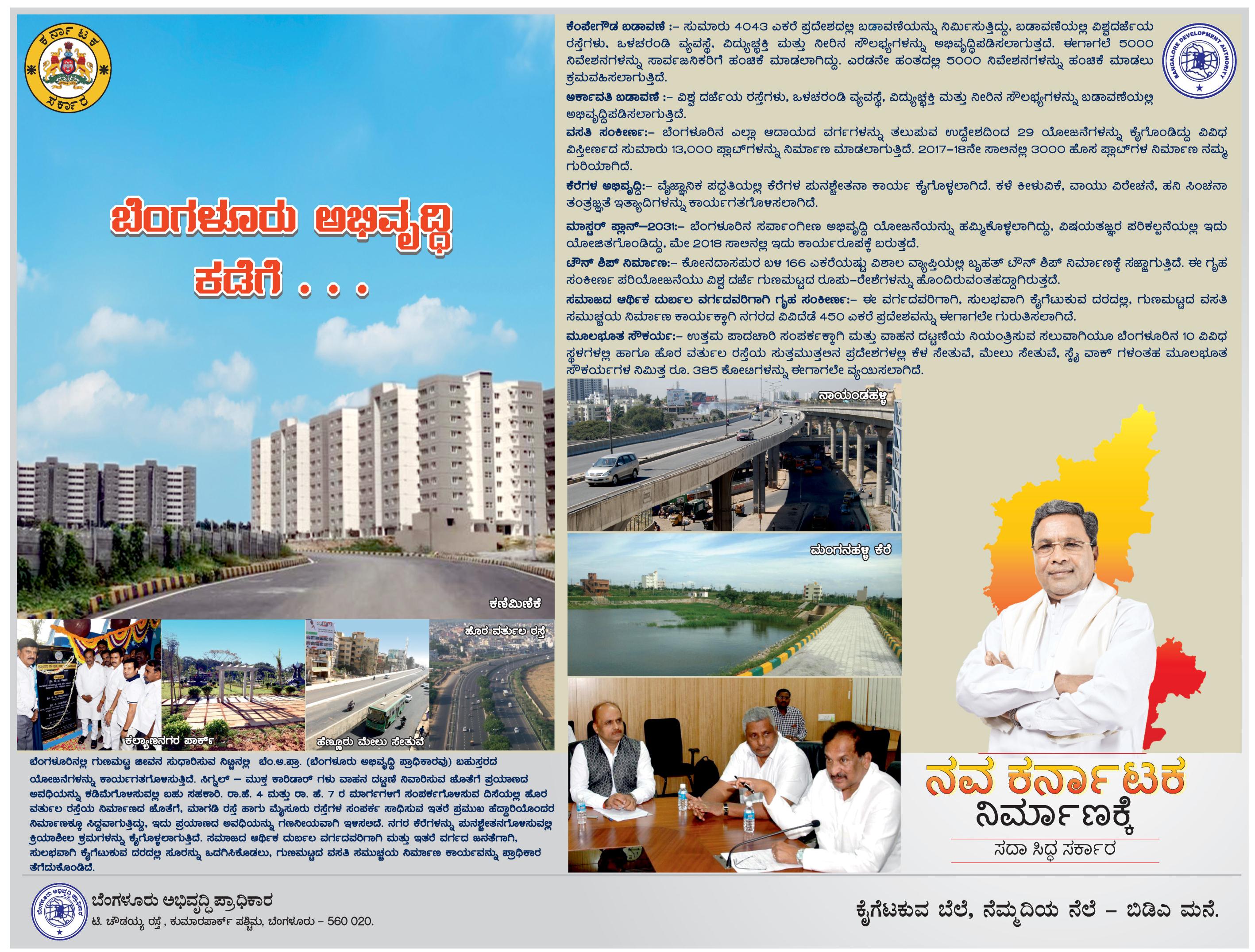 Add by government on works done sofar by BDA...1) On arterial road 2) npkgl development