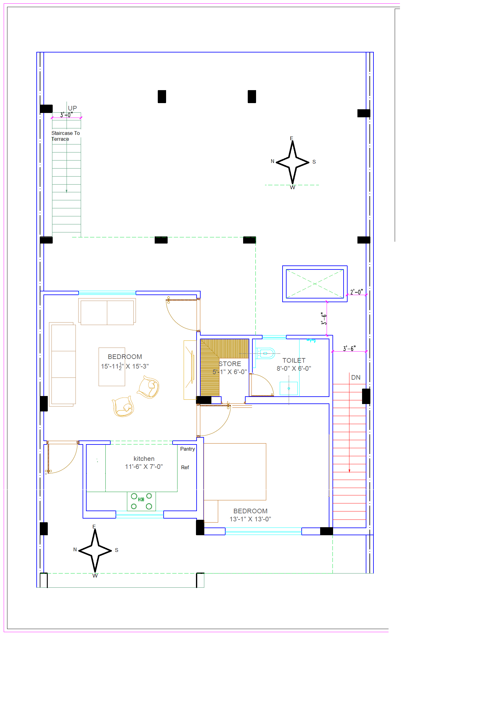 Also don't see tie beams in your drawing. In my opinion you should have tie beams