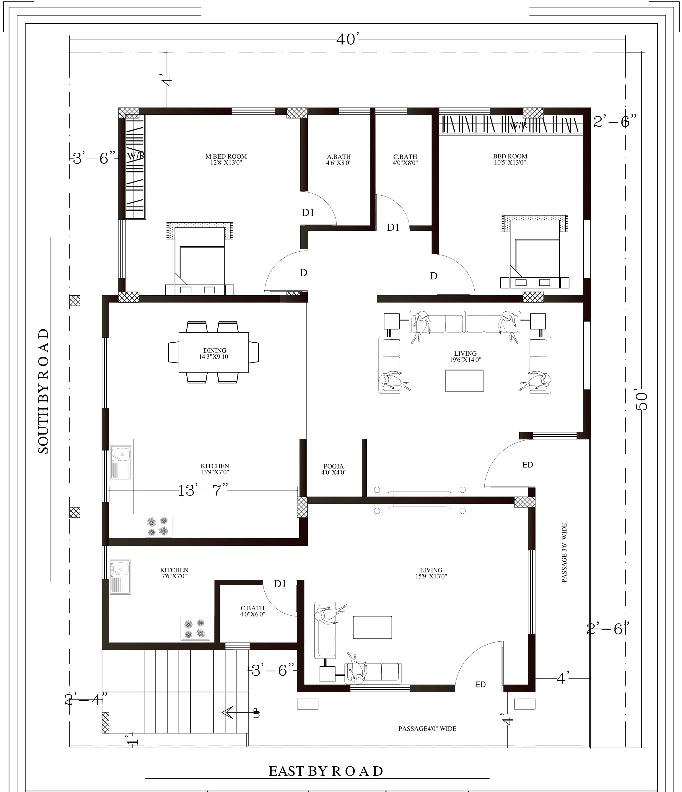 Note : in the first floor plan, south west offset is 2'4"as against 3'6" in the plan .plan needs to be corrected.