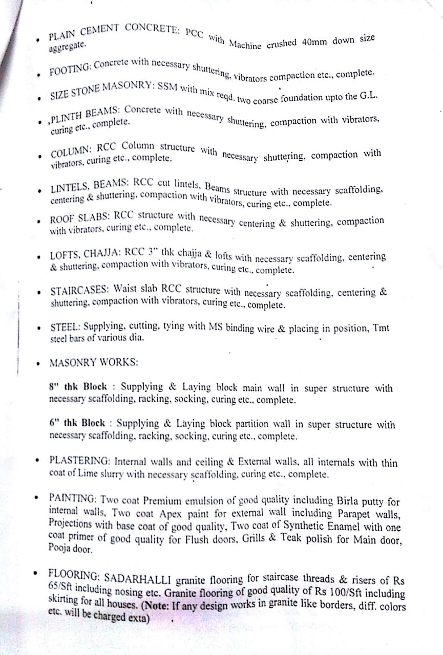 We have finalised the plan for the house G+3. I have received material contract quote from the contractor. Pooja room , sky light, steps flooring, wood flooring for two rooms in 2nd floor and living area will be executed by another person . Members please review the quote and advise.