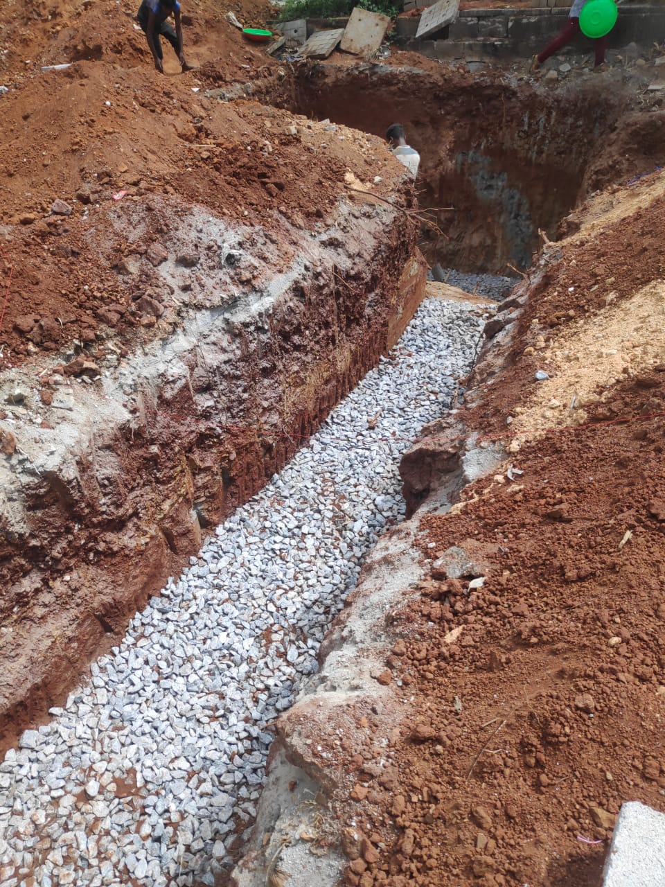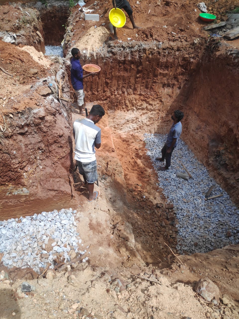 Basement Activity started in traditional way with 3 feet wide Base and tapered to 1 feet at the top. Filled with Boulders, Jelly, and masonry work.